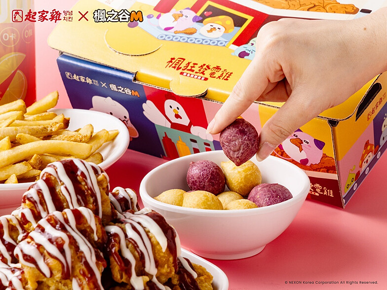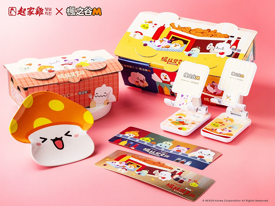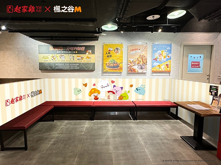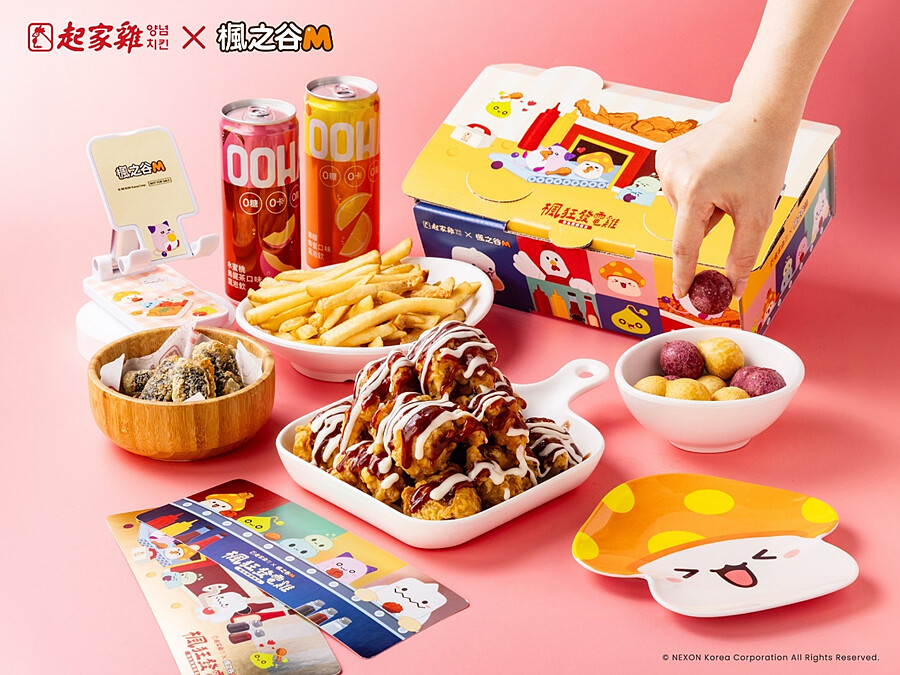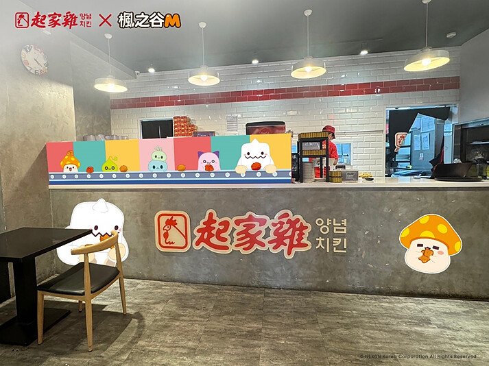 這次特別在起家雞台北小巨蛋店、高雄裕誠店打造《楓之谷M》怪物主題門市,現場有此次聯名的專屬視覺佈置,玩家們最喜愛的菇菇寶貝、雪吉拉、皮卡啾將與起多力在門市一同陪你享受美味的韓式炸雞!