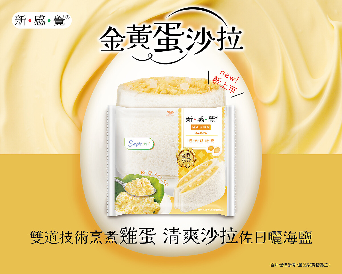 在蛋食文化的影響下,現代人越來越重視營養的攝取,即便是外食族,也會在超商購買茶葉蛋、水煮蛋等即食的蛋類產品補充,而此次新感覺推出「金黃蛋沙拉」新口味,多層次口感的夾心土司將成為質感早餐新選擇。在烹飪工法精進,透過雙道烹煮-水煮與炊蒸,呈現蛋黃的橙色與濃郁感,並帶出蛋丁的豐富層次。濃郁蛋香融合著清爽又酸甜的沙拉醬,最後拌入日曬海鹽為蛋沙拉進行提味,每一口都吃到食材的優質美味及低負擔享受。