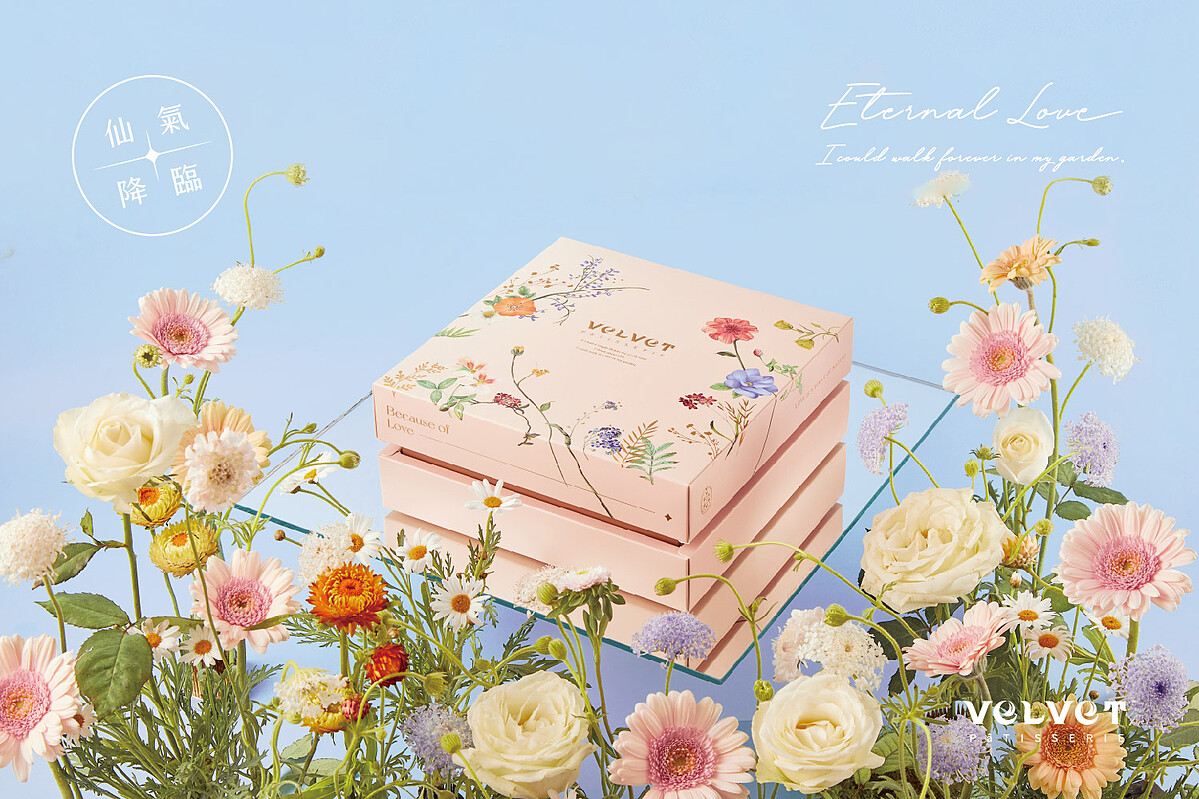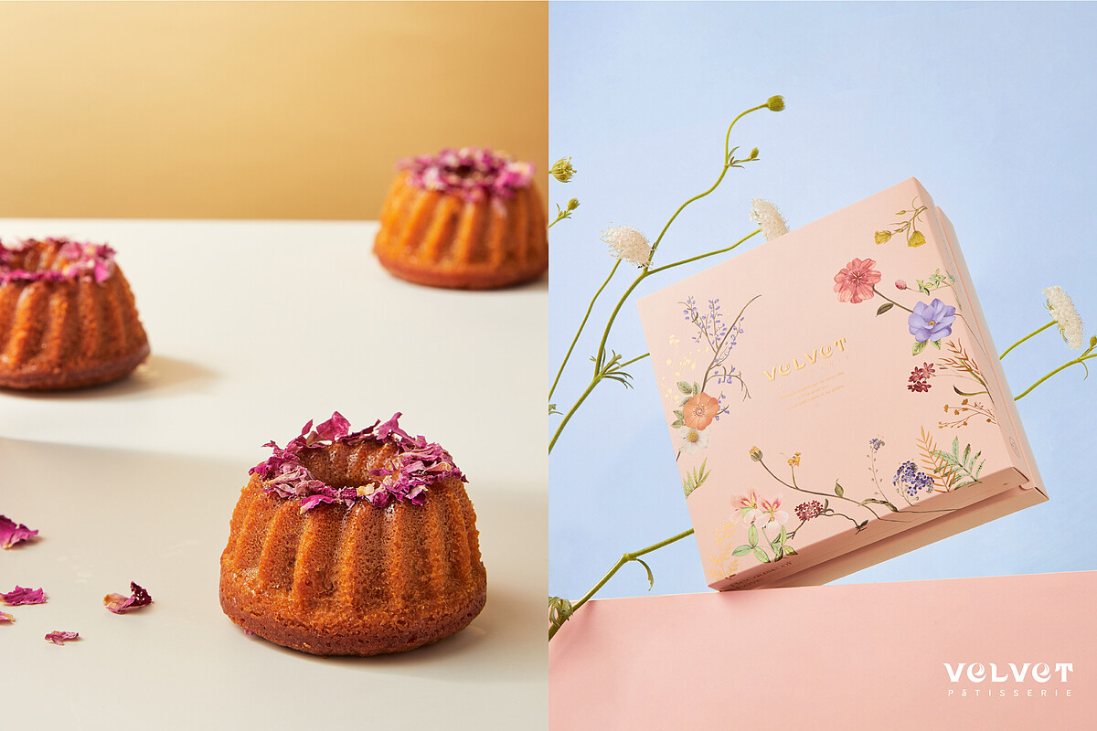 其中「玫瑰洛神花達克瓦茲」內餡使用大馬士革有機玫瑰與法芙娜30%白巧克力,帶著玫瑰香氣的滋味替新人們傳遞喜悅給所有收到的親朋好友。