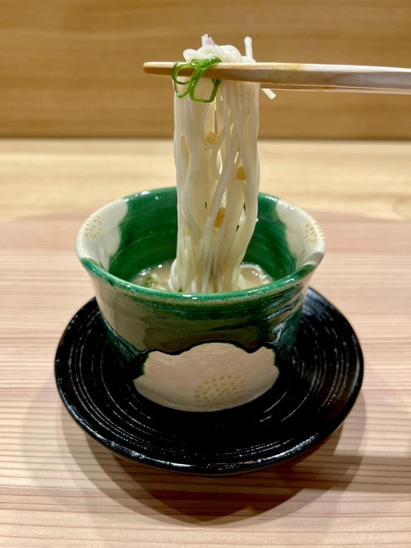 河原畑豪耗時5年改良,他分享自己非常重視女性顧客,希望大家不只能吃到食材的原始風味,也能夠吃得健康。味美原創魚骨湯麵作為店內招牌料理,堅持使用鯛魚魚頭與魚骨熬煮而成,並加入胡椒、香料和素麵,完全沒有加入豚骨、味增,但依舊濃醇鮮美,絕對是「割烹味美」的第一必吃料理。