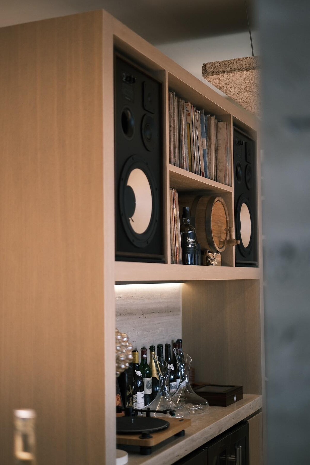 sōzai by LayLow的設計靈感來自建築大師Louis Kahn和Carlo Scarpa,運用大量實心石材堆疊而成,結合曲面玻璃落地窗和奶油白色調,創造出詩意且富有質感的空間。室內則用來自丹麥居家設計品牌Audo Copenhagen的家具,溫潤的曲線設計增添了整體的溫暖氛圍。牆上展示的韓國藝術家Haydonna的作品,則為空間注入了一絲童趣和輕鬆感。