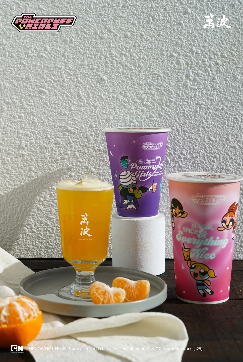 《萬波》X「飛天小女警」聯名限量盲盒與紅包袋將於 1/10 開始發售,只要購買限定合作新品「蜜柑烏龍」大杯,即可以 390 元加購飛天小女警盲盒一個(單筆限購一個),以及單筆飲品消費滿200 元(含以上),即贈送限量飛天小女警紅包袋乙包(一包二入)。