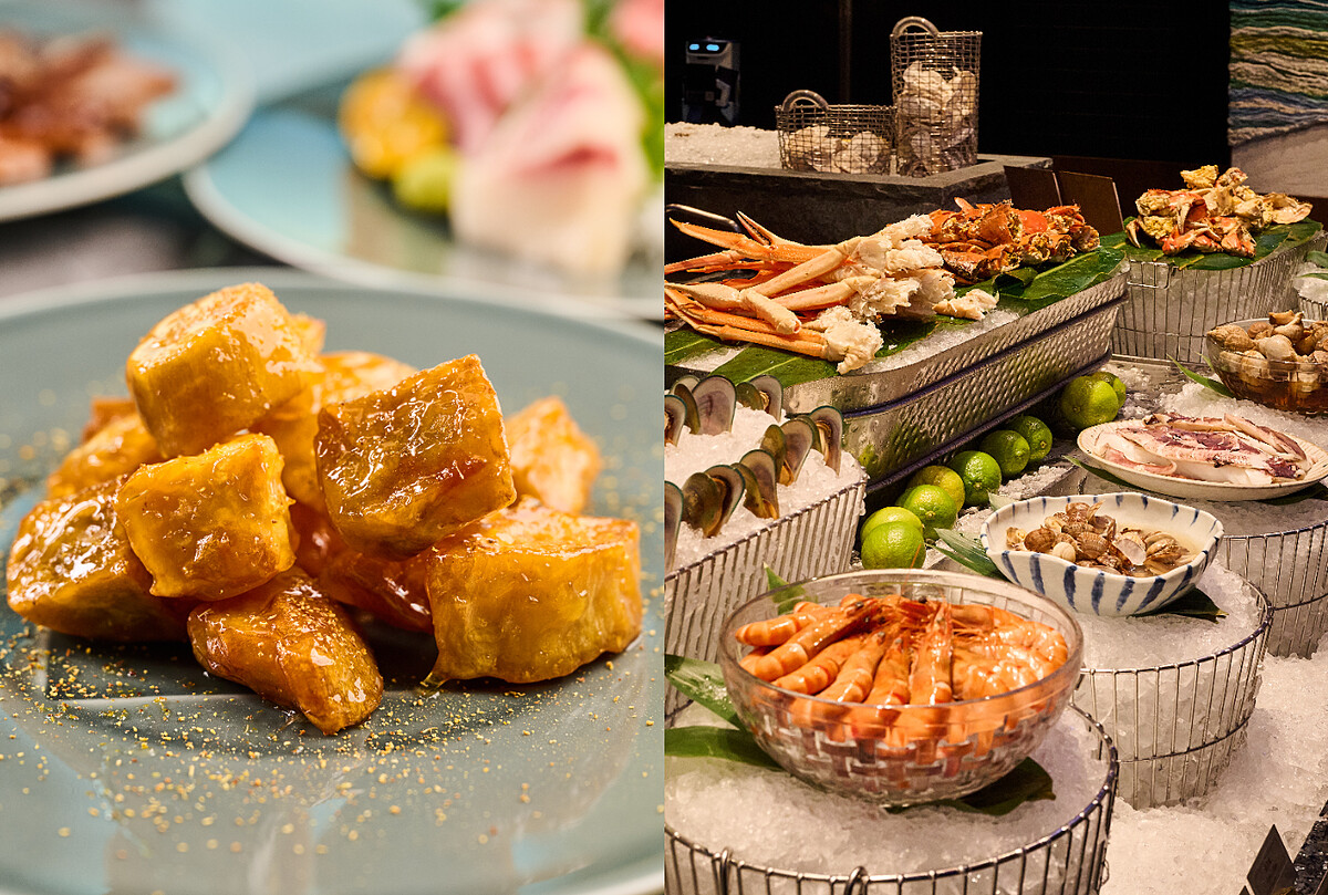 饗 A Joy 不只是一間餐廳,更是連袂各領域職人,融合藝術、文化與食材,深入探索台灣之美的華麗場域。走進360度環景、高達555坪的遼闊空間中,將會進入四種全然不同的感官領域,首先展開序幕的是以藍染打造山景與壯闊植栽的「山」;接著來到「海」,將會看見以編織藝術象徵海洋律動的弧形牆面,以及透過湛藍LED裝置所營造於海中的流動感;再進入8位台灣藝術家將畫作打造成光閣景象的「原」;最後是帶有科幻與近未來氛圍的城市概念區「城」,四個交織不同意象、結合藝術家共同創造的虛實地景,一同訴說台灣令人動容的片段。