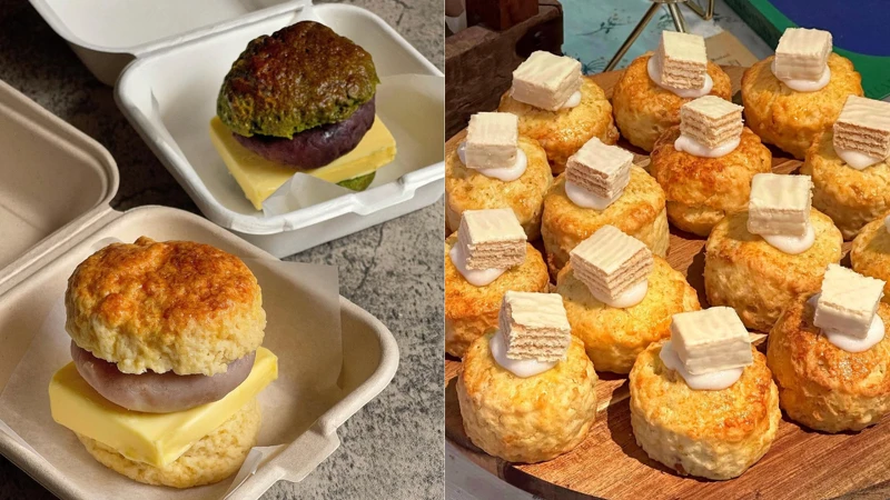 說到司康一定少不了的「尷尬司康」擁有多間分店,還會不定期到全台各地開設快閃店,甚至被評選為台中必買伴手禮!扎實有份量的司康搭配淋醬和小點綴,把原本樸實的風格變得華麗又精緻。特別是夾餡系列,厚厚的內餡堆得飽滿,宛如一顆迷你小漢堡,可愛到不知從何下口!