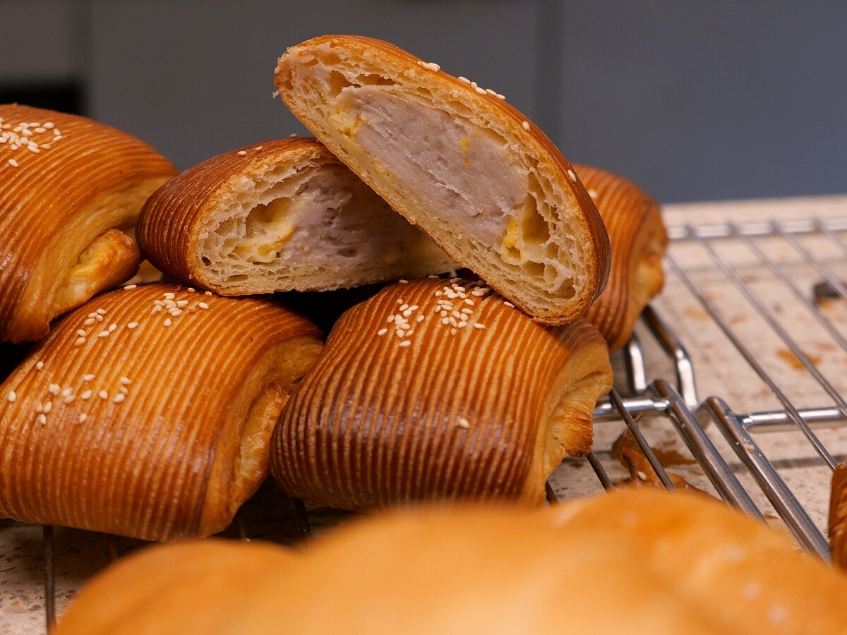 這款取自台灣人喜歡的風味組合,以芋泥單配鹹蛋黃做為內餡,紮實濕潤的內餡加上外層酥脆的外皮,恰到好處的甜度,讓人不小心就一口接著一口,超級滿足。