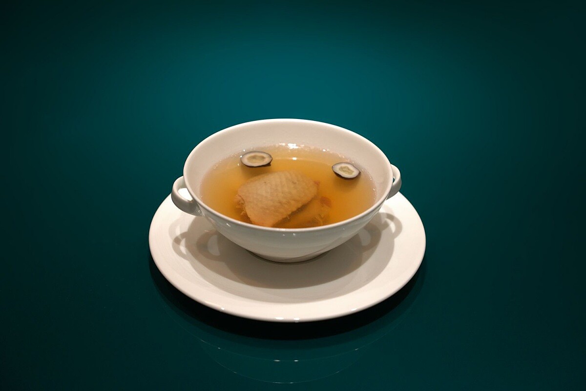 代表嚴冬的「大雪」,最適合來一碗湯品補充元氣。取玉米雞、豬排骨、赤肉、雞腳、螺頭等食材分段慢燉,熬出琥珀色澤的清澈湯底,搭配非洲海椰皇、川貝母和仿土雞翅,湯底鮮甜濃郁,雞肉細嫩,川貝母帶來潤澤效果,而非洲海椰皇的天然清甜則為湯品帶來豐富的味道層次。