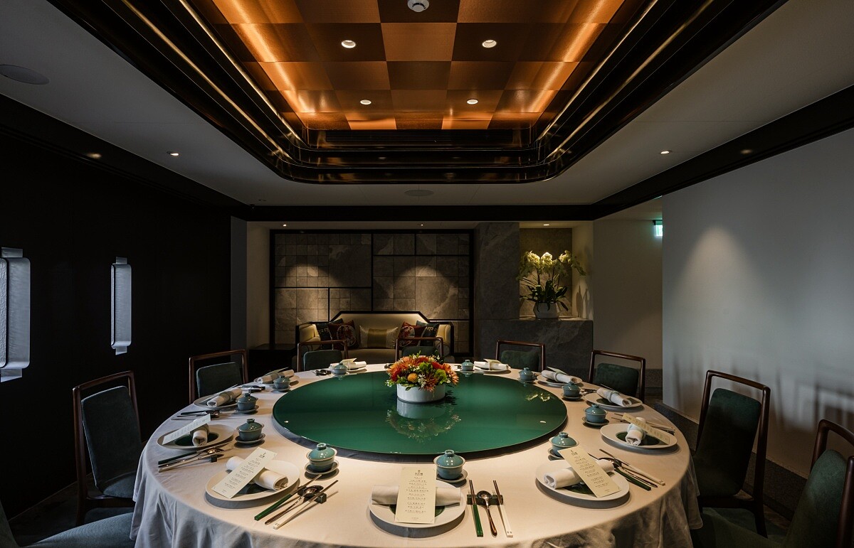 不僅菜品融合中西料理手法,在空間上也尋求此脈絡,由知名設計事務所「本事空間製作所」打造室內空間,保留了老建築的結構,搭配沉穩的木質和大理石元素,再以孔雀藍與湖水綠色調點綴。整體風格低調又不失現代感,像是西式洋樓的寧靜氛圍,卻又帶有活力,成為饕客在繁忙都市中的一片放鬆空間。開放式用餐區的環形綠色沙發營造出摩登質感,讓食客在享受美食的同時,也能感受到視覺與味覺的雙重享受。此外,餐廳還設有三個包廂,滿足需要隱私的客人。