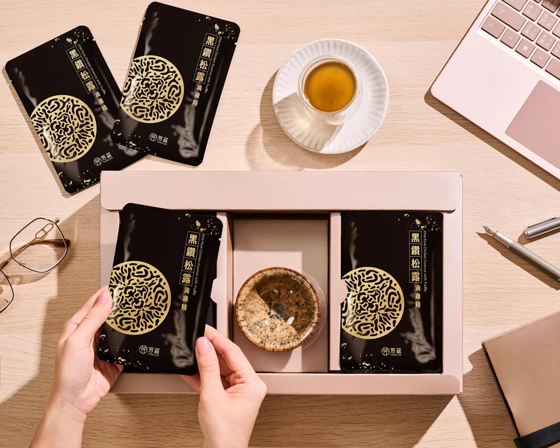 畢竟不是每個人都會處理烹調這些昂貴又費工的食材,大家更期待收到能立即享用的珍饈美饌!因此芳茲「黑松露滴雞精」禮盒去年過年期間首度問世後,迅速風靡送禮圈,這款融合黑松露珍稀輕奢、西式高雅魅力,以及芳茲滴雞精清甜好口感的獨特作品,就是讓人送得出手、收得開心的完美好禮啊!