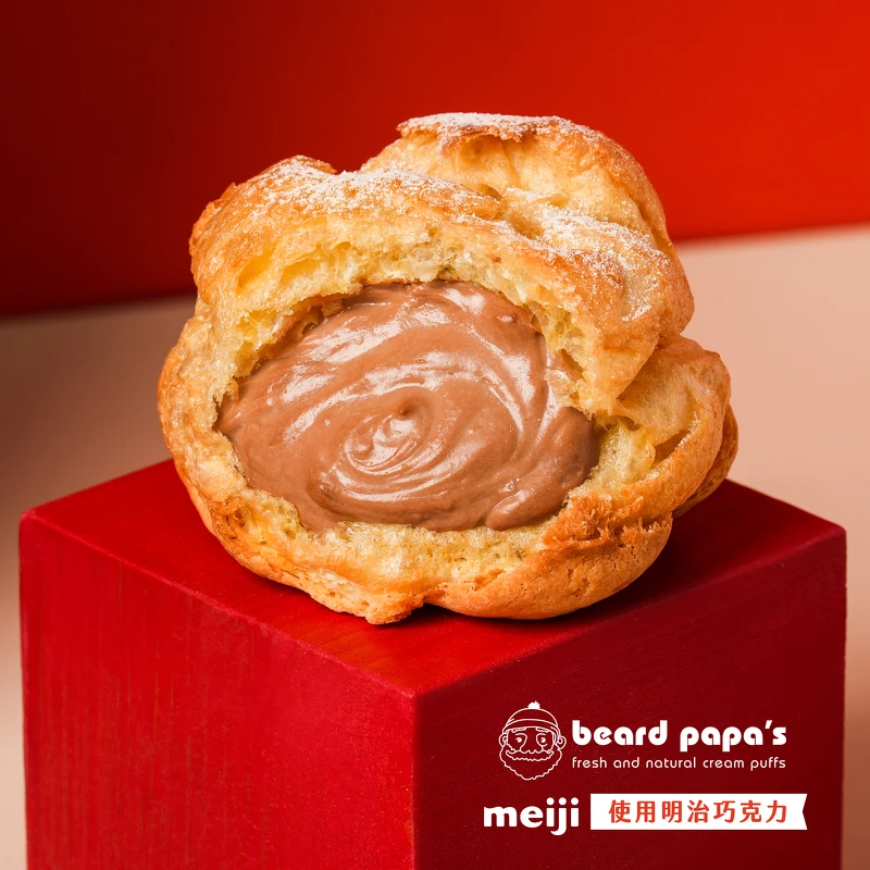 新年就是要芙氣滿滿!2025年1月,beard papa’s特別推出限量甜點 「牛奶巧克力泡芙」,用濃郁香滑的明治黑巧克力和經典卡士達,搭配鮮奶油打造出「牛奶巧克力內餡」,每一口都讓人陷入巧克力的幸福漩渦。