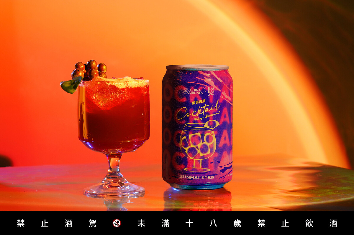 BLAH BLAH Bar 與金色三麥的世界冠軍釀造團隊,這次特別以華航的企業識別色為靈感,經半年精心策畫,推出兩款獨家罐裝調酒,用台灣在地優質食材,描繪天空的夢幻色彩。1月起從桃園機場出發的旅客將能品嚐到「花粉假期」,返台時則能享受「紫雲漫旅」;2月起松山和高雄的旅客也能在航班上享受這兩款調酒,打造專屬於你的高空美味時光。