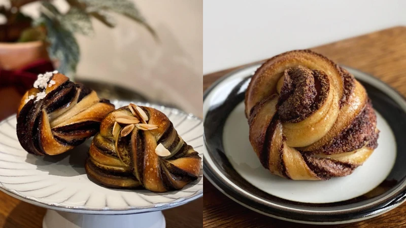 在青埔的甜點工作室「Twist n Roll Bakery」,高顏值的麻花狀肉桂捲是使用頂級的麵粉、奶油、肉桂粉,以及台灣在地的有機雞蛋製作。特別的麻花造型不只好看,還凸顯麵包的鬆軟口感,肉桂醬和麵體交織融合,和一般的相比起來更不容易膩口。目前提供黑貓宅配,如果在桃園也可以在青埔A19附近面交。