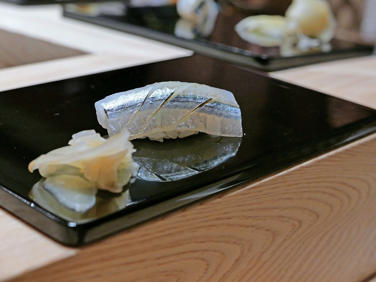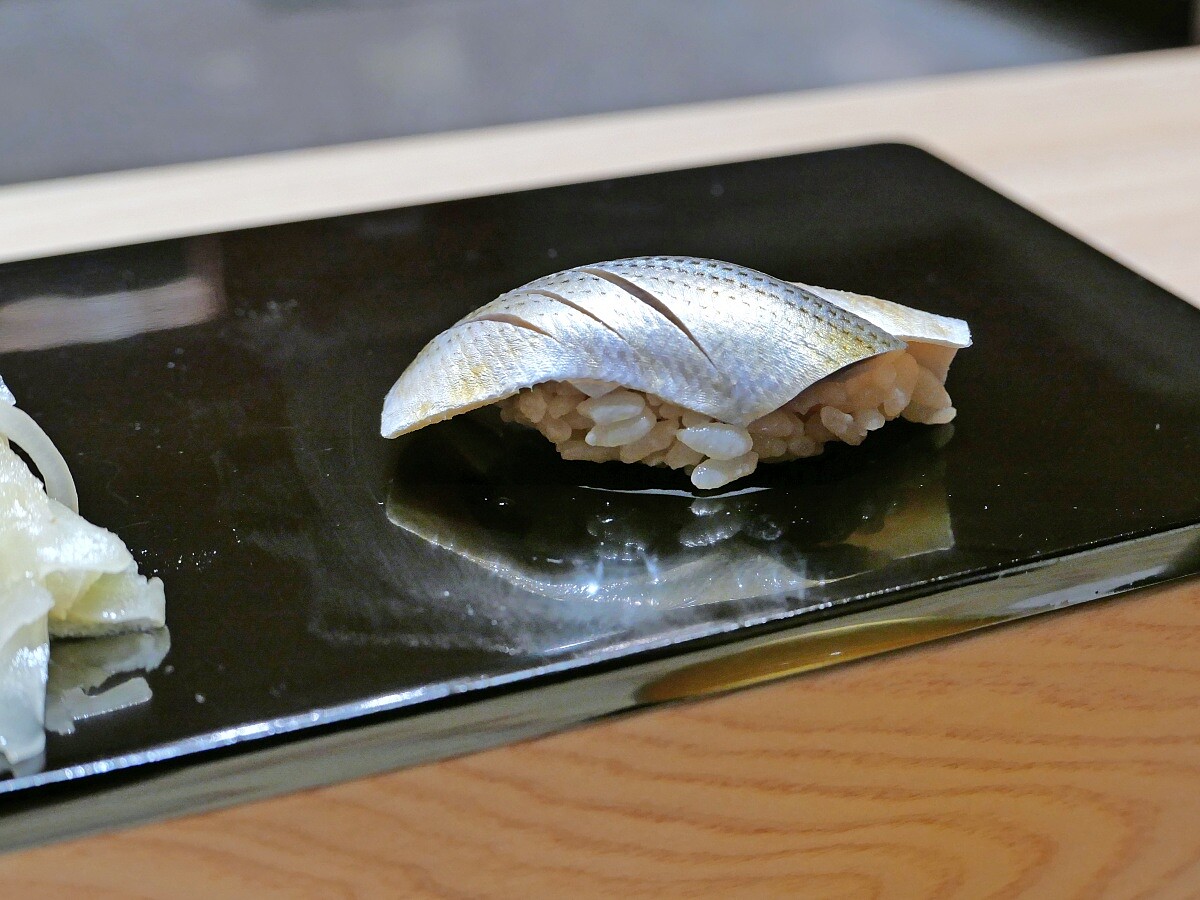 小肌是江戶前壽司的代表性食材之一,也是料理長最喜愛的魚種。小肌其實是鰶魚(コノシロ)的幼魚,這種魚依照大小有不同的名稱。當鰶魚長到5至8厘米時被稱為「新子(シンコ)」,8至10厘米時稱為「小肌(コハダ)」,而當其長到11至15厘米時則叫做「中墨(ナカズミ)」,超過16厘米的則是「鰶(コノシロ)」。