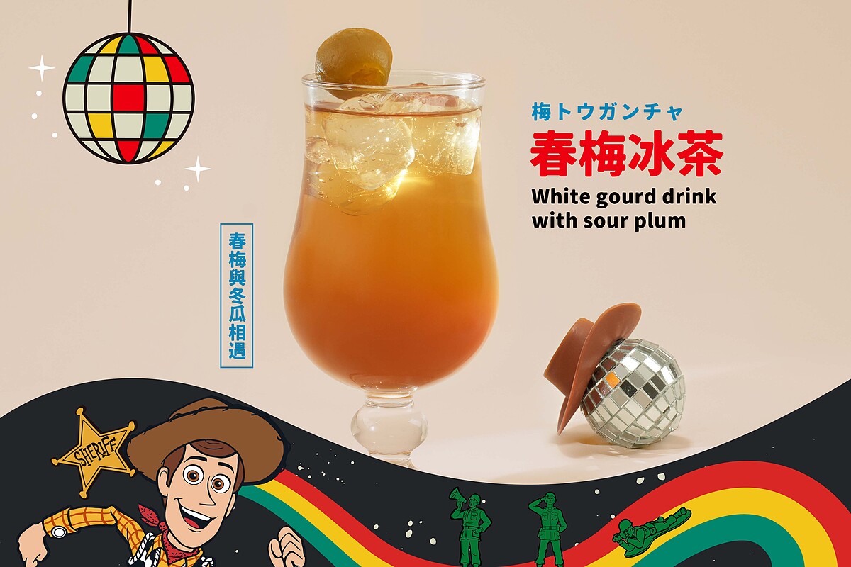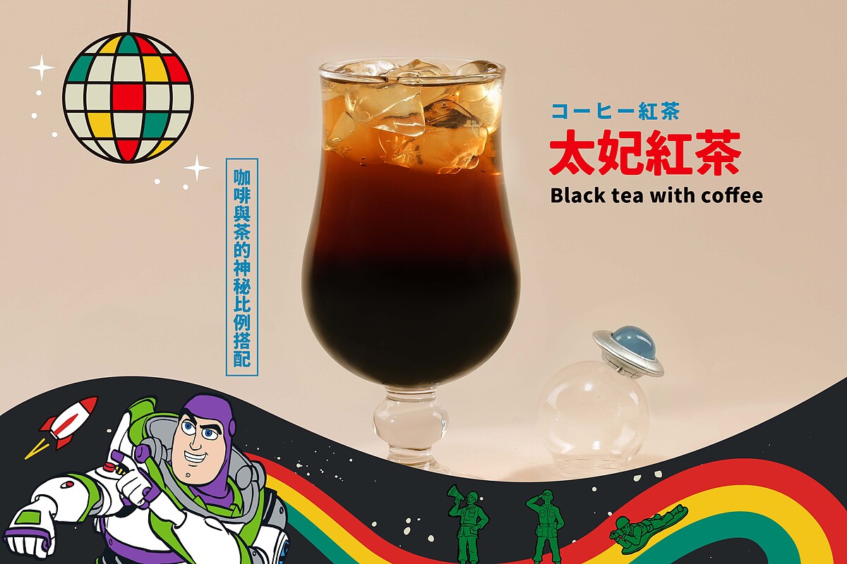 只要會員在門市消費滿NT200,就能獲得《玩具總動員》別針盲包,購買新品茶飲還可獲得限量刮刮卡一張,隨機刮會員點數或飲品折價券,整體活動結束還可參加《玩具總動員》限量商品豪華套組抽獎。