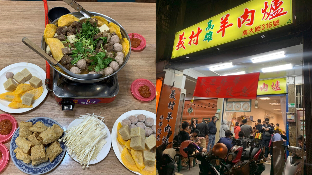 位於萬華的義村專業羊肉爐,夏天不開店,因此每到天氣變冷時,總會不斷被客人追問什麼時候要開始營業。義村分為羊肉爐、帶皮羊肉和羊腳筋三種,紅燒湯頭完全不油膩,加入芹菜和香菜後,更加清爽甘甜,如果喝不夠還可以加湯,讓你在寒冬中喝得很過癮。義村比較特別的是沒有飯或麵,但可以加點冬粉,吸附湯汁後很對味。