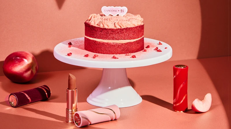 這款聯名甜點完美復刻貳樓經典紅絲絨蛋糕,並以蘭蔻#280裸桃粉棕小蠻腰唇膏為靈感,用溫柔的色調和細膩的口感,描繪一場只屬於情人節的甜蜜序曲。