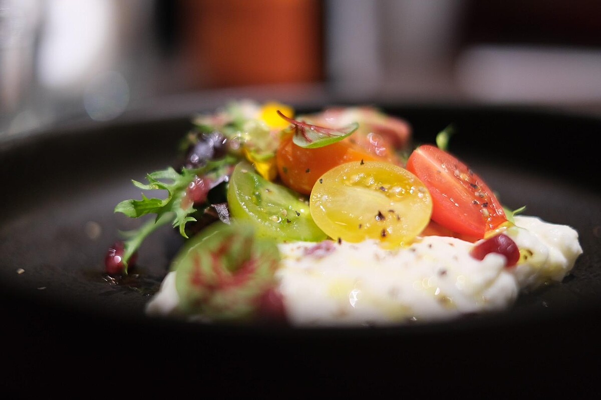 接下來這道沙拉,光看名字就知道是為情人節量身打造的「Rainbow Love」,滿滿的彩色番茄、紅石榴籽和田園生菜,搭配綿滑如絲的乳酪,色彩繽紛到讓人心情大好。紅石榴象徵愛的火花,彩色番茄帶來活力,還有那酸酸甜甜的果醋醬,像極了戀愛中的小驚喜。