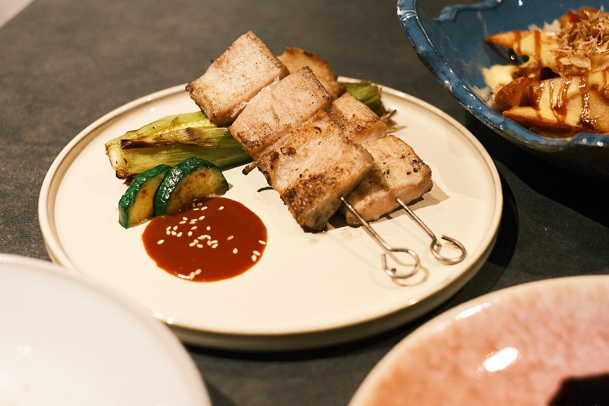 松阪豬佐蜜味噌:炭火烤出外酥內嫩的口感,搭配蜜味噌的甘甜,肉汁爆發