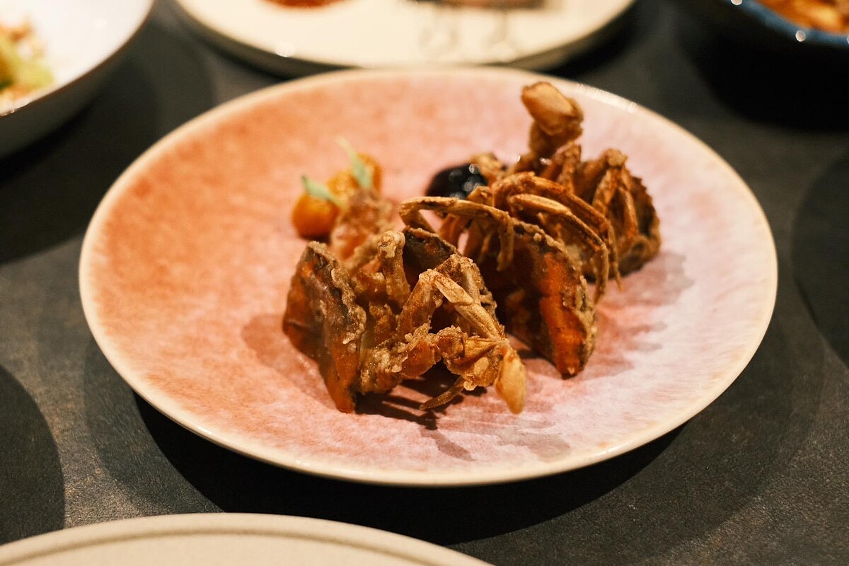 高麗菜嬰佐烏魚子、櫻花蝦:炭烤高麗菜,搭配烏魚子與櫻花蝦的鮮味,意外超搭