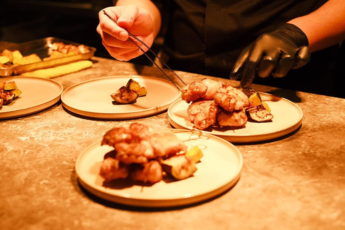 UCHI的料理融合炭火燒烤、煙燻與西式醬汁,重新詮釋經典日料。主廚講究食材特性搭配草本煙燻技術,舉例來說,牛肉選擇迷迭香增添香氣,豬肉則搭配百里香,讓肉質與炭火香氣達到完美平衡。