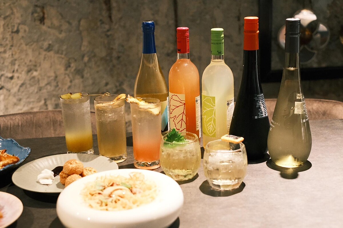 紫蘇白葡萄蜂蜜氣泡:氣泡感十足,帶有白葡萄與蜂蜜的微酸甜口感