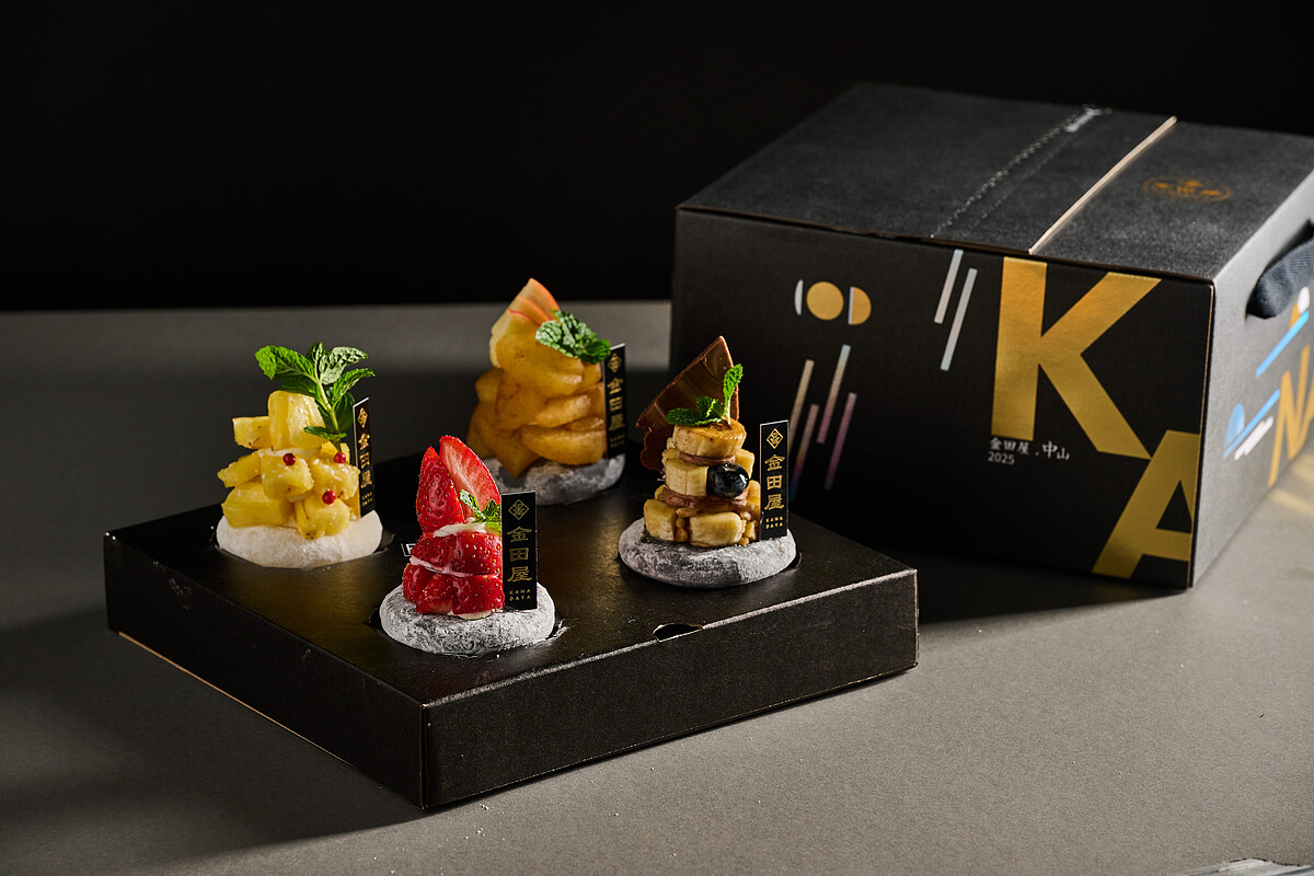 來自東京的創新和洋水果大福品牌「金田屋」,以傳統日式職人技藝為基礎,融合西式甜點元素,打造出獨一無二的夢幻水果大福。最經典的「珠寶盒水果大福」嚴選上等糯米、竹炭製成的黑色麻糬皮,內餡結合奶油乳酪與白豆餡,包裹當季最新鮮的水果,口感層次豐富鹹甜交錯,每一口都像在吃藝術品。這款大福不僅在日本引發搶購熱潮,更是各大社群媒體上的熱門打卡甜點,現在台灣也能吃到了。