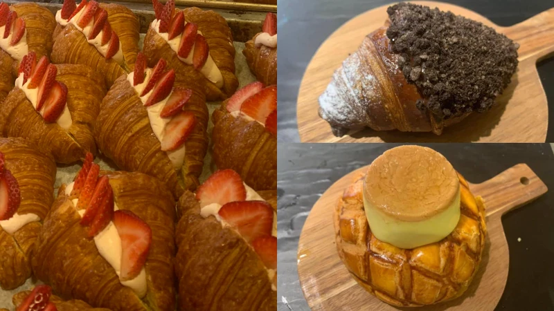 捷運三重國小站對面的「台灣番薯」有賣蕃薯,但大部分的客人都是直奔這裡的可頌跟麵包而來,不論何時經過總是大排長龍。可頌的口味超多,還經常有優惠活動,來店的顧客幾乎都是一袋接一袋地買。其中大推必吃的是焦糖布丁菠蘿,一整顆布丁豪邁蓋在菠蘿麵包上,焦糖醬緩緩流下,光看就讓人口水直流,難怪限購兩顆!喜歡鹹麵包的也請務必把爆漿蒜蒜包一起帶回家。