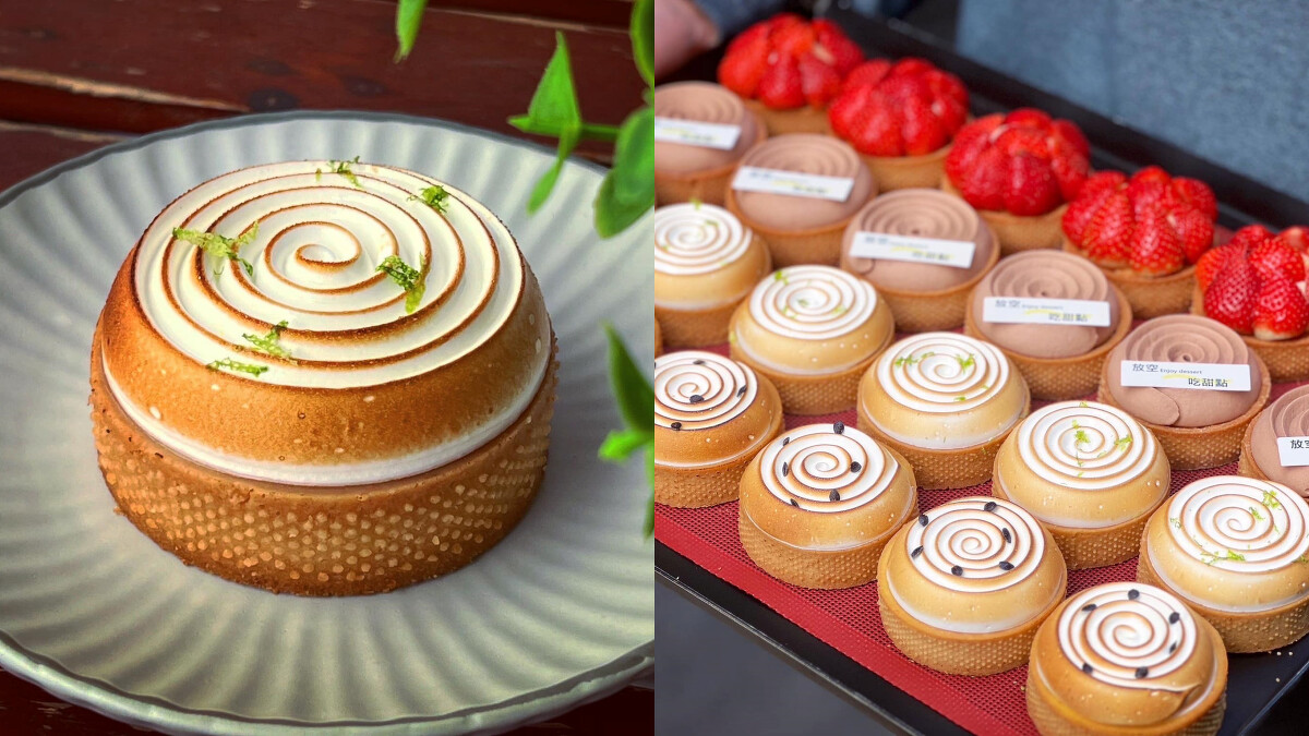 放空吃甜點是一間隱身在巷弄、檸檬塔評價超高的甜點工作室,招牌不大,需要特別留意才不會錯過,只提供外帶無內用。「螺旋檸檬塔」的檸檬醬使用天然原料製作,小火熬煮到最滑順,再放上輕盈柔軟的瑞士蛋白霜,並撒上新鮮檸檬皮,和下方即使冰過也不會過硬的塔皮一起享用,層次非常華麗。