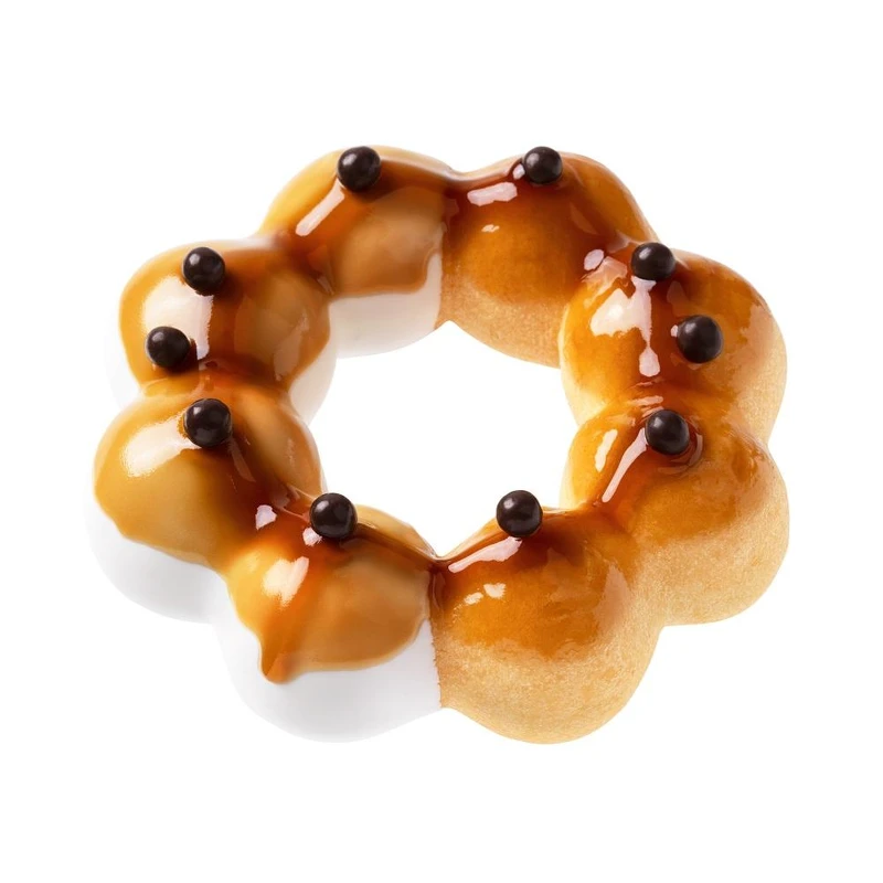 珍煮丹經典人氣暢銷飲品「黑糖珍珠鮮奶」變身甜甜圈!作為這次的主打口味,一層濃郁的白牛奶可可醬上面再沾滿濃郁的黑糖蜜,點綴上了極似「珍珠」的可可球,咀嚼甜甜圈的Q彈口感就像是喝手搖飲的珍珠,這波堤真讓人分不清是甜甜圈還是黑糖珍珠鮮奶。