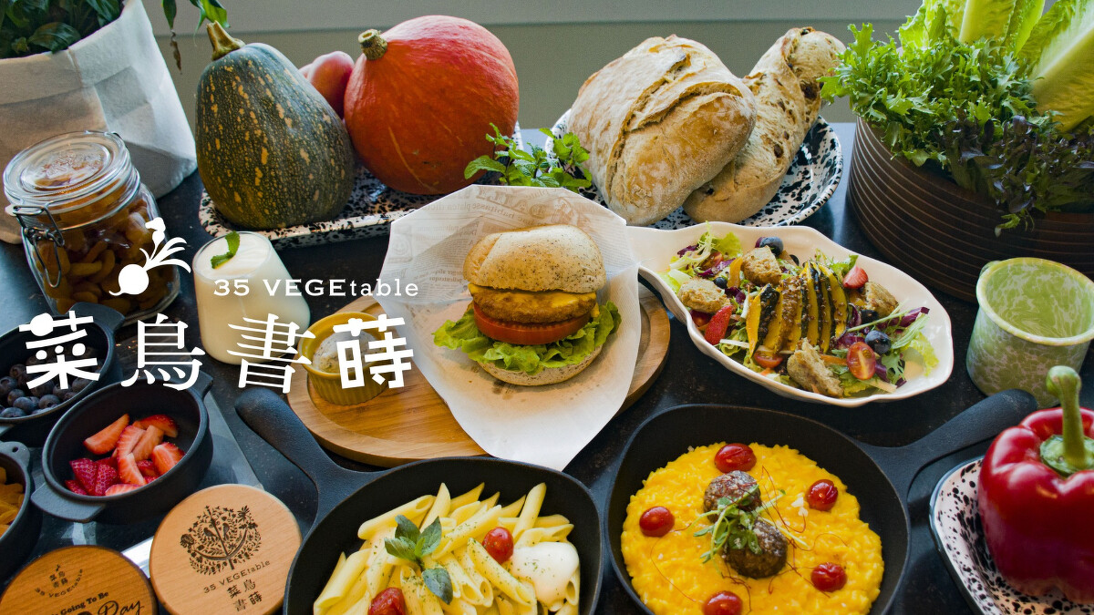 「菜鳥書蒔」以健康建築為理念,將書本和溫室蔬菜栽培融合,打造成綠意盎然的文青空間。主打自助吃到飽,提供豐富創新的蔬食料理及手作甜點,呈現食材最純粹的美好。