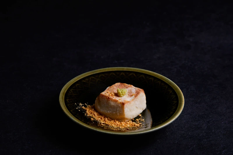 有別於傳統割烹對生食的偏愛,「琥珀割烹」大膽突破框架,主打燒烤、蒸煮與燉煮技法,冷食比例僅占兩至三道,透過層層火候淬鍊,賦予料理更深邃的風味。這次春季限定菜單則以更細膩的方式擷取當令食材精華,將關西的職人精神與關東的創新美學融合,讓日料饕客在這場餐桌藝術中,品味到春日的輕盈、細緻與層次。
