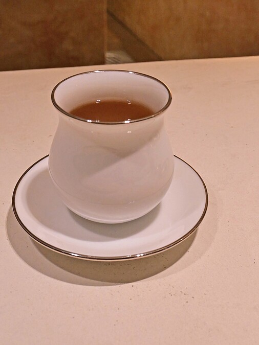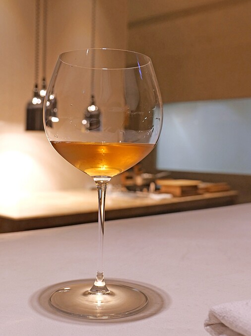 這款茶的概念類似於碧螺春的綠茶,採用了輕發酵的製程,味道較為淡雅清新,帶有綠豆和新鮮蔬菜等清爽的香氣,非常適合搭配第一道沙拉。在「Li.nu」的茶液都是當天新鮮冷泡處理,並以台灣茶為大宗。 餐廳的搭配理念是「茶」、「酒」、「菜餚」分開享受,讓每個風味都能各自展現其特色。雖然如此,茶液的清香優雅卻味菜色帶來另一股淡雅香氣。