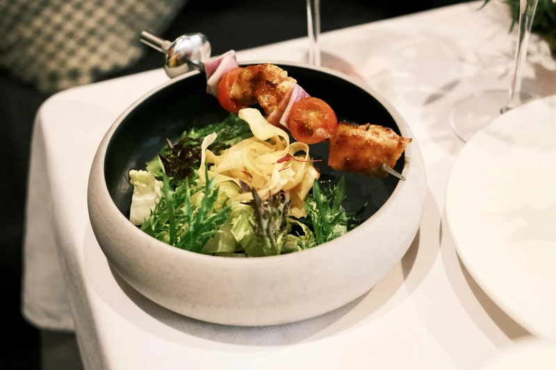 伊比利豬經炙燒後散發迷人香氣,搭配爽脆蘿美生菜,一口咬下肉嫩多汁,與生菜的清新相互襯托,開場就讓味蕾驚艷,也替這次的餐點拉開序幕。