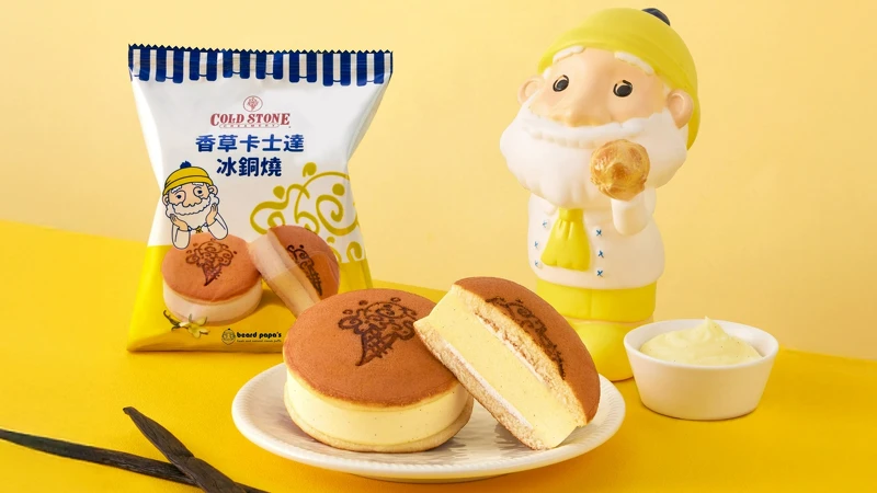 COLD STONE酷聖石與泡芙專賣店 Beard Papa's 再度聯名,打造新品「香草卡士達冰銅燒」,並同步推出全新夾心系列甜點,2款美味冰品即將於全台7-11搶先上市,全新口味等你來嚐鮮。