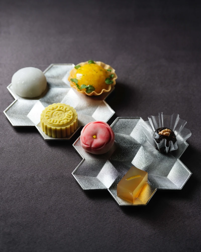 「鳳凰酥」酥香層疊,包裹酸甜餡心,口感細緻;「金棗錦玉羹」晶瑩剔透,以金棗與烏龍製成,清冽醇雅;「綠豆蓮蓉馬蹄糕」綿密細膩,豆香與蓮蓉甘甜相融;「李鹹練切」鹹香中透出果香,層次分明;「芝麻甜酒釀大福」外皮柔軟Q彈,內餡釋放芝麻與酒釀的香氣;「棗泥核桃威士忌」則以濃郁棗泥搭配核桃脆香,醇厚的威士忌尾韻悠長。