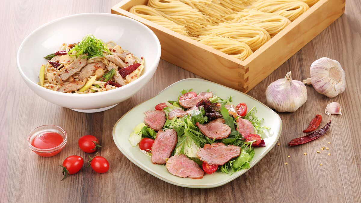 BEPPIN PASTA在這粉嫩氣息的春天,選用花蓮高品質櫻桃鴨推出兩款季節新品「鴨胸野菜沙拉佐梅子醬」、「香蒜辣味鴨胸義大利麵」,快來體驗充滿櫻桃鴨油香的櫻花季料理。
