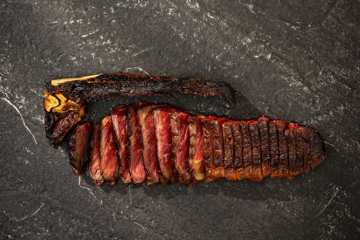 由「A CUT」獨家引進來自澳洲新南威爾斯州銅樹農場的荷斯登熟齡乳牛(Holstein Friesian Cows)。銅樹農場的創辦人原本是上市公司的負責人,後來決定投資農場並學習養殖牛隻,他堅持將產品直送餐桌,不通過中盤商,這樣的理念讓餐廳與農場的合作更加緊密,目前已合作接近一年。 這些5至8歲的退役乳牛以自然放牧飼養,肉質細膩,擁有濃郁的大理石花紋和豐富風味。主廚以50天的乾式熟成,並選擇MB4+等級的帶骨紐約客牛排,經過專業處理後,賦予牛肉鮮嫩甜美和嚼勁,口感層次豐富,烤製後更呈現出多層次的香氣,成為「凌駕肋眼」的美味新作。