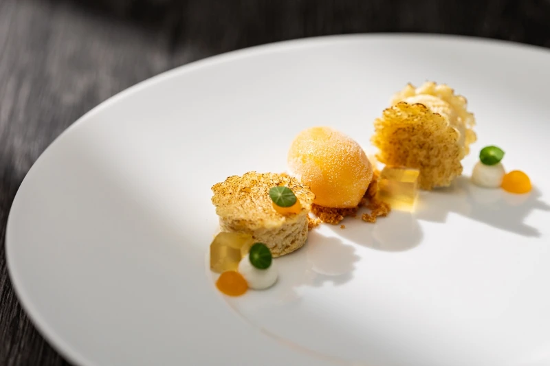 此外,去年團隊迎來全新氣象,邀請曾在態芮擔任甜點副主廚的王映心加入「A Cut」擔任甜點主廚。她常以台灣飲食文化為靈感創作甜點,例如這次的創新的冰沙,靈感來自夏季熱門飲品「冬瓜檸檬」,或是將「烤土司」與「木瓜牛奶」的元素融合,再到轉譯「燒番麥」的盤飾甜點,他都成功地透過創意搭配,將我們熟悉的飲食記憶轉化為細膩的甜點風味。