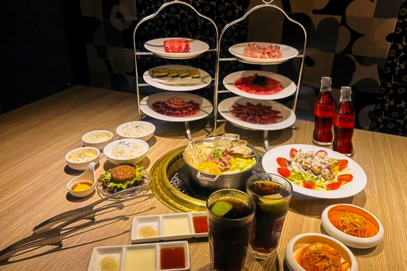 「胡同燒肉 x 痛風老饕」聯名套餐:主打奢華海陸盛宴,嚴選澳洲和牛、上等豬五花、炙燒干貝等頂級肉品,搭配可口可樂,讓燒肉體驗更上一層樓。