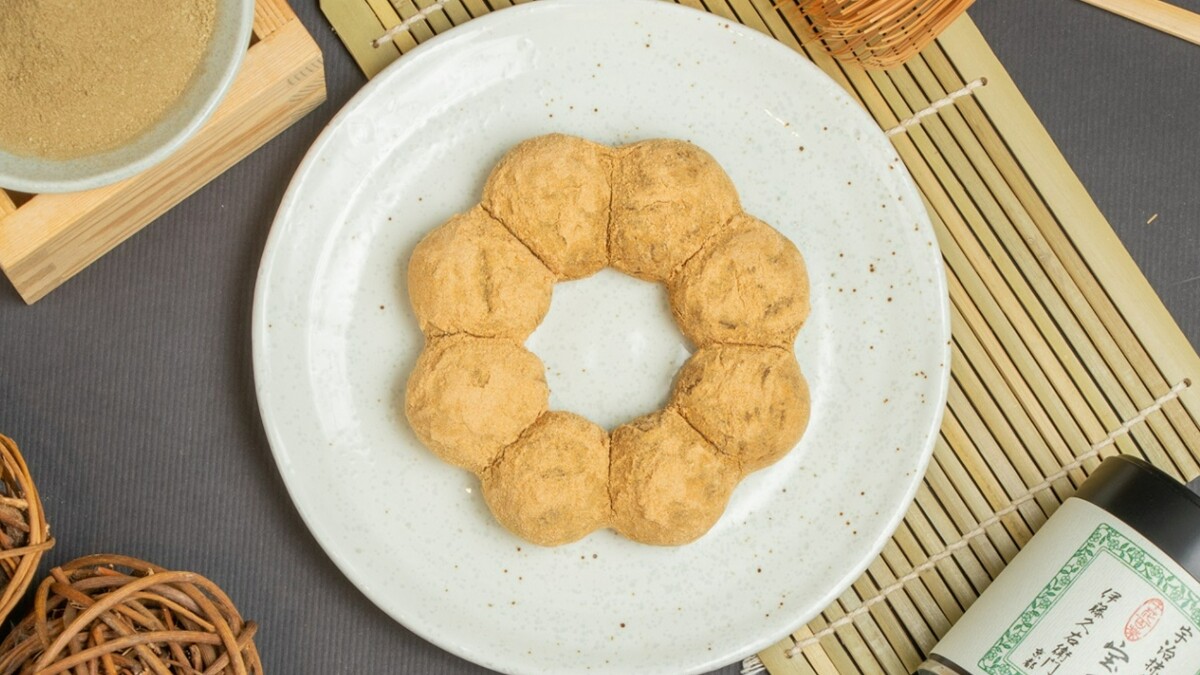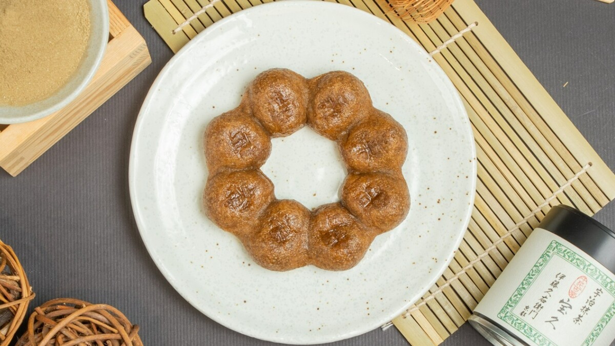 在歐菲香麵糰中加入帶有甘醇焙茶香氣的焙茶粉,打造出獨特的焙茶歐菲香,並裹上一層厚實的豆香蜜糖沾醬,完美融合豆香與焙茶的經典風味,為你呈現一場味蕾的雙重盛宴。