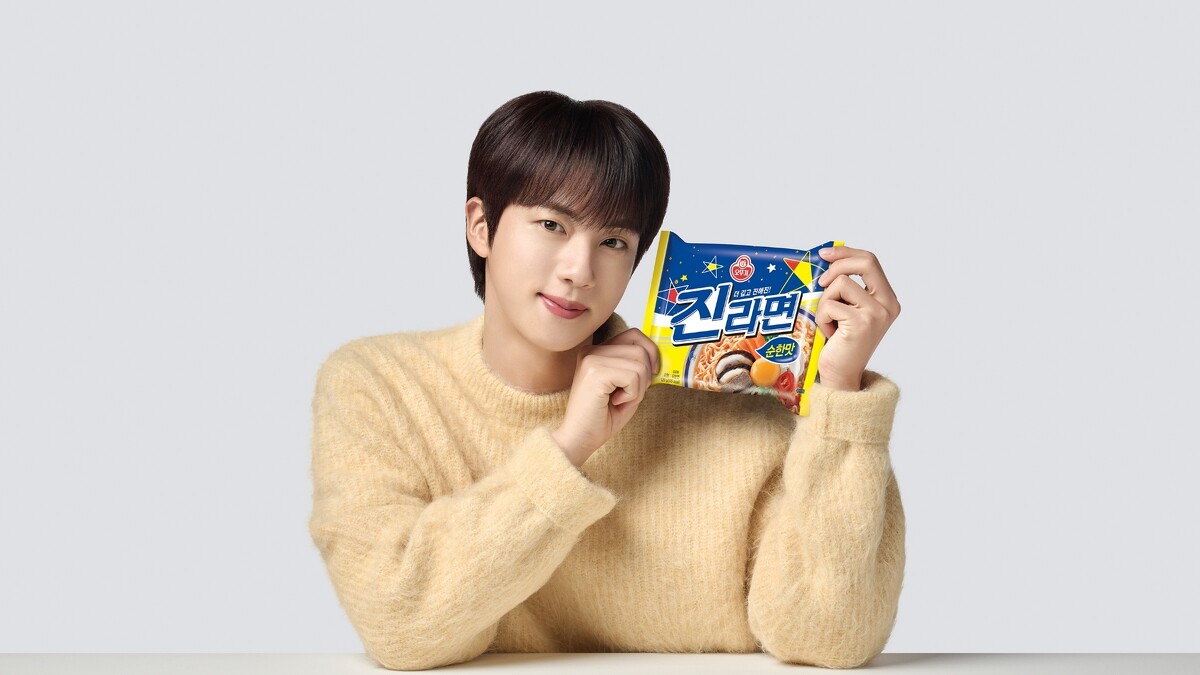 韓國不倒翁旗下最受歡迎的「金拉麵」銷售額破千億韓元,成為韓國最具代表性的泡麵之一,以獨特的風味獲得泡麵控的青睞。這次金拉麵再度與韓國防彈少年團的JIN合作,以「Jinjja Love金拉麵」為主題啓動了全球廣告活動,演繹出韓劇風格的金拉麵愛情故事,同時也推出限定版 JIN肖像杯裝麵,4月起在台灣也買得到,準備手刀搶貨拉。