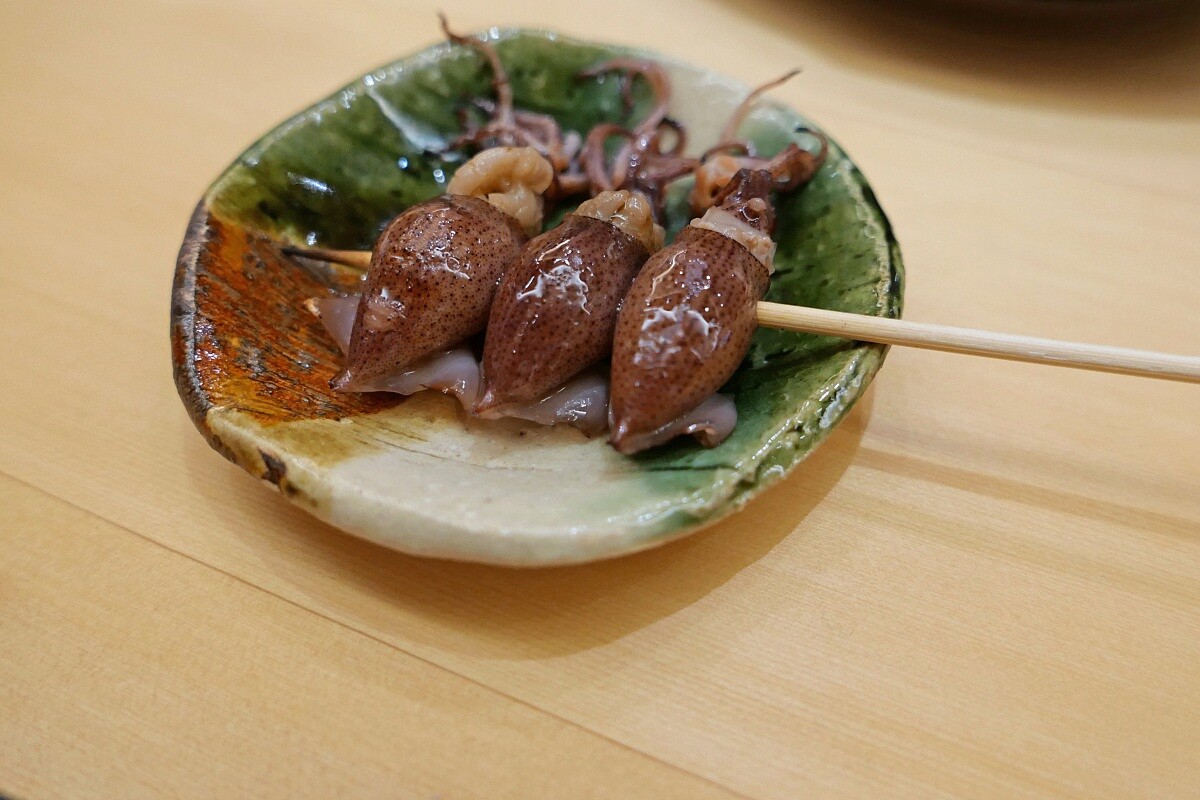 選用當季的日本富山螢烏賊,不僅內臟具有獨特香氣,燒烤後的炭香,更能顯現螢光烏賊本身純淨的鮮度與美味。