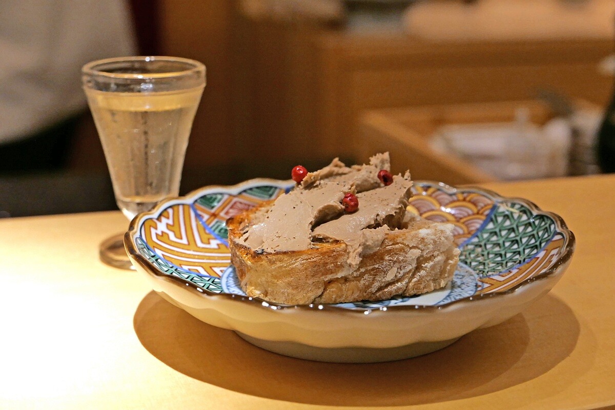 將油脂最為豐富的雞白肝,混合鮮奶油、紅酒、少許白蘭地與洋蔥,製成滑順的白肝慕斯,再搭配高含水量、中酸度的酥種麵包,讓白肝慕斯在麵包陪襯下,顯現濃郁奶香與淡雅酒香,最後再搭佐帶有香草味的法國清酒延伸韻味,整體風味飽滿豐沛,十分可口。