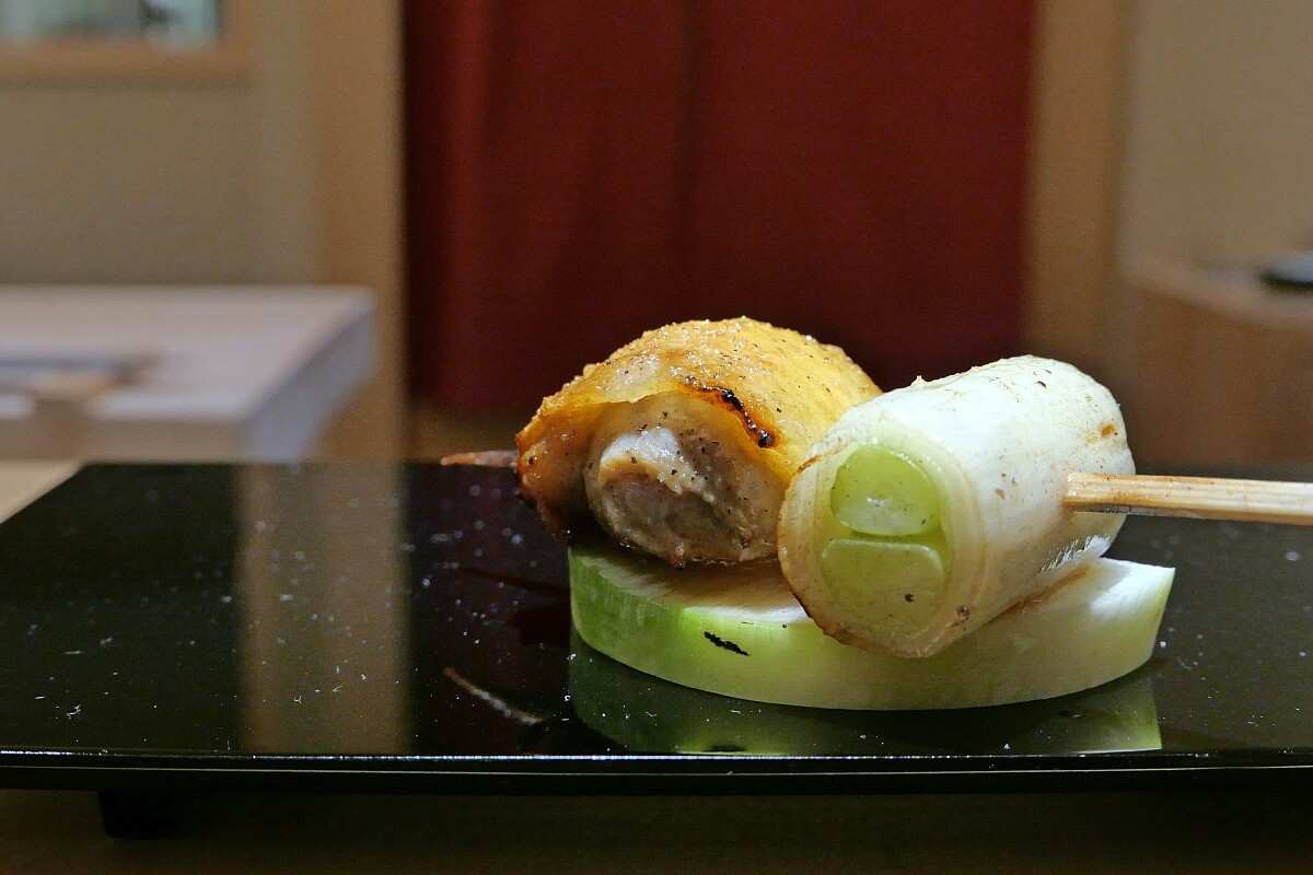 不做過多調味,僅將雞心燒烤後輕點胡麻油,再搭配日本萬能蔥蔥泥賦予藥味。咀嚼中可感受柔軟、多汁的口感,以及逐層堆疊的豐富滋味。