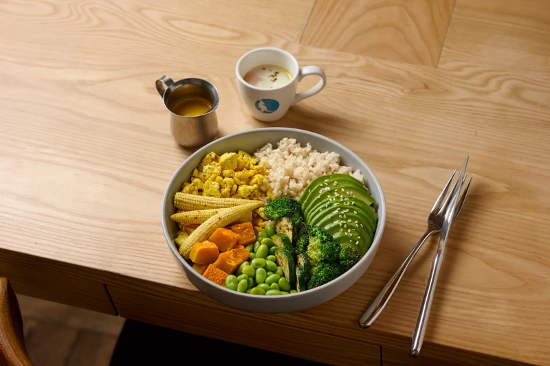 對 Brendan 來說,澳洲的早午餐文化最迷人的地方,就是喜歡用健康又新鮮的原型食材。而這樣的理念,也正好呼應了 Andy 開設 The Antipodean 時希望把這樣自在又充滿活力的飲食風格帶進台灣的初衷。 這次聯名菜單中的佛陀碗(Buddha Bowl),正是這種精神的代表作。整道料理選用高纖的糙米作為基底,搭配以薑黃醃製、自家製作的豆腐,口感紮實,甚至有點像雞胸肉般富有嚼勁,香氣十足。配菜則選用營養滿分的櫛瓜、花椰菜、玉米筍、南瓜、毛豆和酪梨等新鮮蔬菜與健康脂肪來源,吃起來色彩繽紛又豐富。 靈魂醬汁是自製的「紅蘿蔔薑汁油醋醬」,微微辛辣的薑香中帶著胡蘿蔔的自然甜味,酸香中又不失溫潤感。所有食材拌在一起,每一口都有不同的層次變化,清爽又有飽足感,是那種吃完會覺得「舒服又滿足」的好味道。