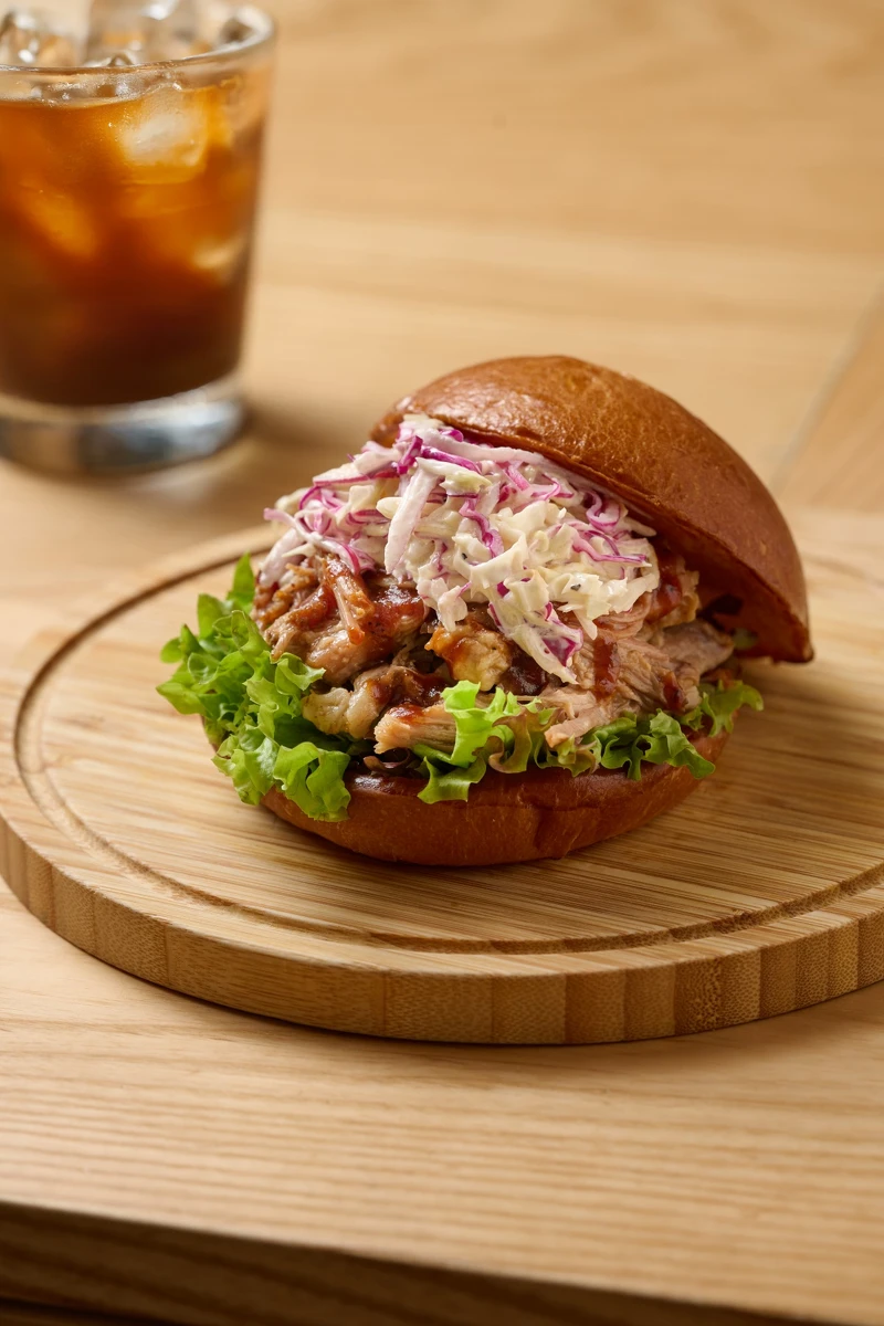 這道手撕豬肉料理,對 Brendan 來說不只是美味,更充滿回憶。這是他母親從模里西斯搬到澳洲後學會的一道菜,常常在家庭聚會時出現在餐桌上,搭配軟麵包和沙拉一起享用,是一家人圍坐聊天、分享歡笑的味道。 這次聯名菜單中,Brendan 把這份熟悉的家常味帶來台灣,不僅保留記憶中的調味比例,也特別講究燉煮的火候與時間,讓豬肉慢慢變得軟嫩入味,還帶著膠質的滑順口感。夾進鬆軟的布里歐漢堡麵包,再加上清脆的甘藍菜沙拉、帶炭烤香氣的 BBQ 醬和香菜,咬下去鹹香濃郁又有層次,每一口都讓人忍不住想再吃一口。