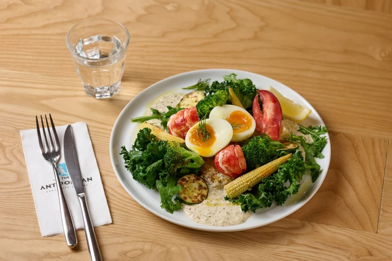 一咬下溫熱的龍蝦肉,柔嫩細緻、鮮味十足,這樣的滋味對 Brendan Pang 來說,不只是美味,更是一段熟悉的回憶。每次吃到這道料理,他總會想起自己在澳洲西岸城市 Perth 度過的童年時光——這正是一道充滿他成長情感的料理。 這道以波士頓野生活體龍蝦為主角的料理,去年九月首次推出時就大受歡迎,因此這次 Brendan 和 The Antipodean 團隊特別將它加入正式菜單。除了保留原有的經典組合,也針對份量與配菜做了些調整,加入更多蔬菜元素,讓口感與營養都更加豐富。 溫熱的龍蝦配上店內招牌的香煎薯絲餅、營養滿分的羽衣甘藍與多樣烤蔬菜,最後再淋上帶點酸香、奶香濃郁的特製塔塔醬,整體吃起來清爽又有層次,讓人一口接一口停不下來。