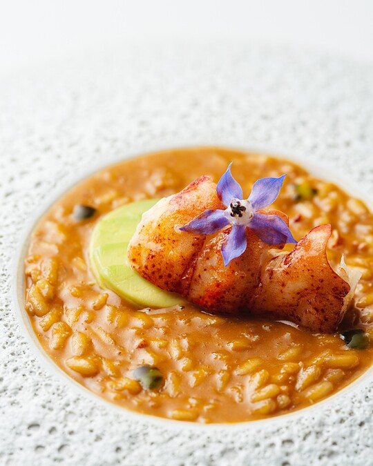 以托斯卡尼沿海地區經典的義式海鮮湯(Cacciucco)為靈感,使用龍蝦高湯與帕達諾起司慢火燉煮燉飯(Risotto),將海鮮的鮮美完整鎖入每粒米飯之中。搭配細膩柔嫩的油封龍蝦肉,並以酪梨與蝦夷蔥油點綴,入口盡是濃郁的鮮美海味。