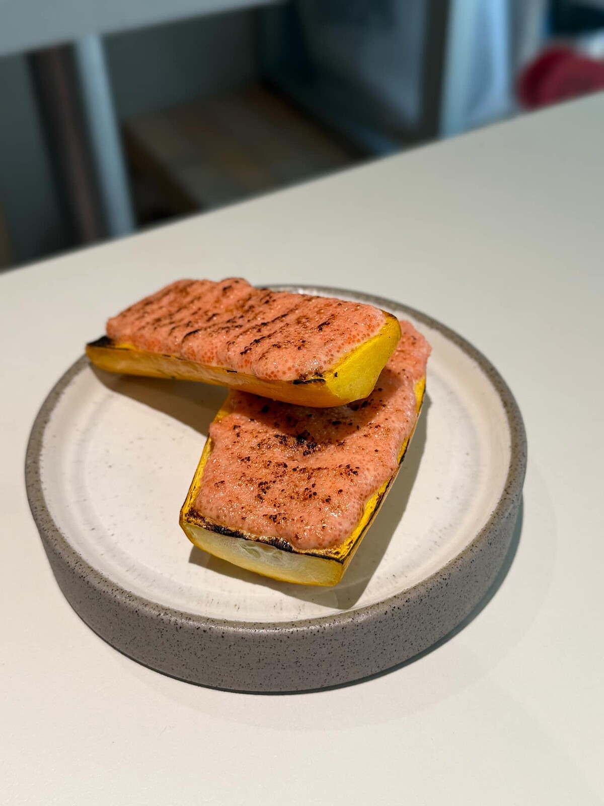 「烤櫛瓜與炙燒明太子」