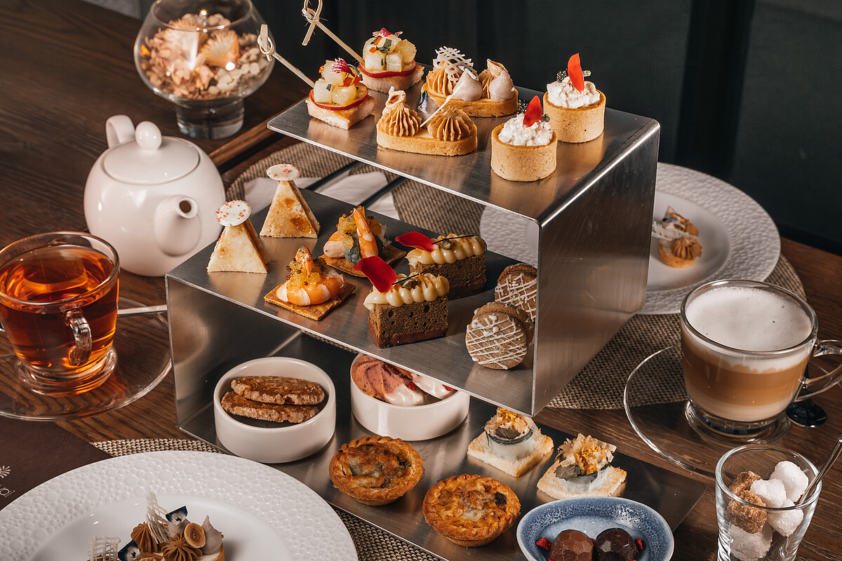 下午茶加泡溫泉雙重享受!北投老爺酒店PURE 歐式餐廳即日起推出的「茶悅.漫午後」純享雙人英式下午茶,選用藍鑽蟹肉、魚子醬等頂級食材,設計出鹹甜點各5款的精緻點心,還能搭配英國Twinings 唐寧茶精品茶葉系列,為美好午後來場鹹甜交融的味覺饗宴,每套1680元+10%。造訪北投怎能忘記溫泉?可另外選擇「以食會湯」專案,即可享有雙人獨立湯屋、PURE歐式餐廳餐食,平日價格從3288元起,快找時間放鬆一下!