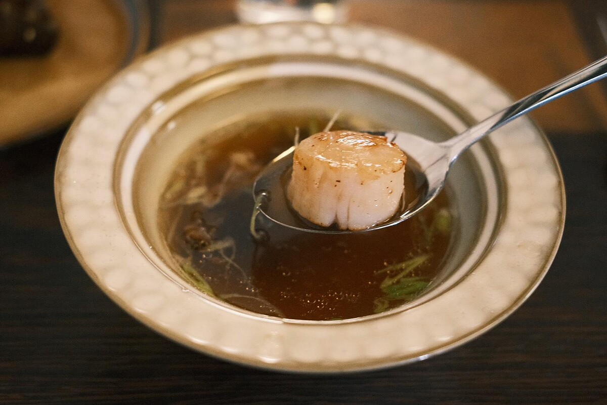午間套餐每位980元起,也有台味點心與甜品供應。像是加入鵪鶉蛋與蝦脆餅的「月見光明」蝦仁飯,還有日曬鹽滷豆花「步步高昇」、茶香十足的「鐵觀音拿鐵布丁」,都藏著台灣風土的小巧思。